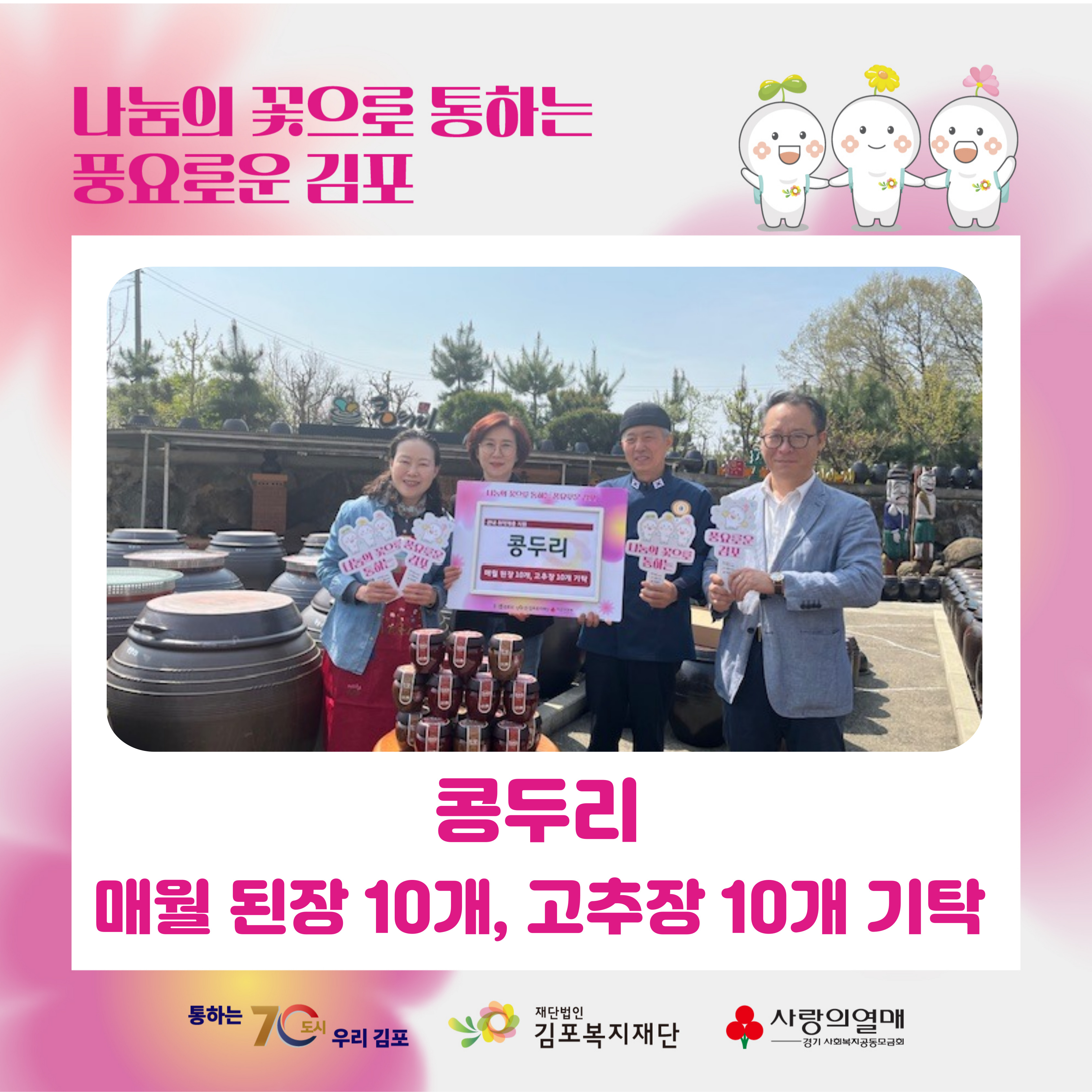 김포시 대곶면에 위치한 **콩두리(대표 안인수)**에서 4월 24일(목) 발효된장과 고추장을 후원해 주시는 소중한 마음을 보내주셨습니다.