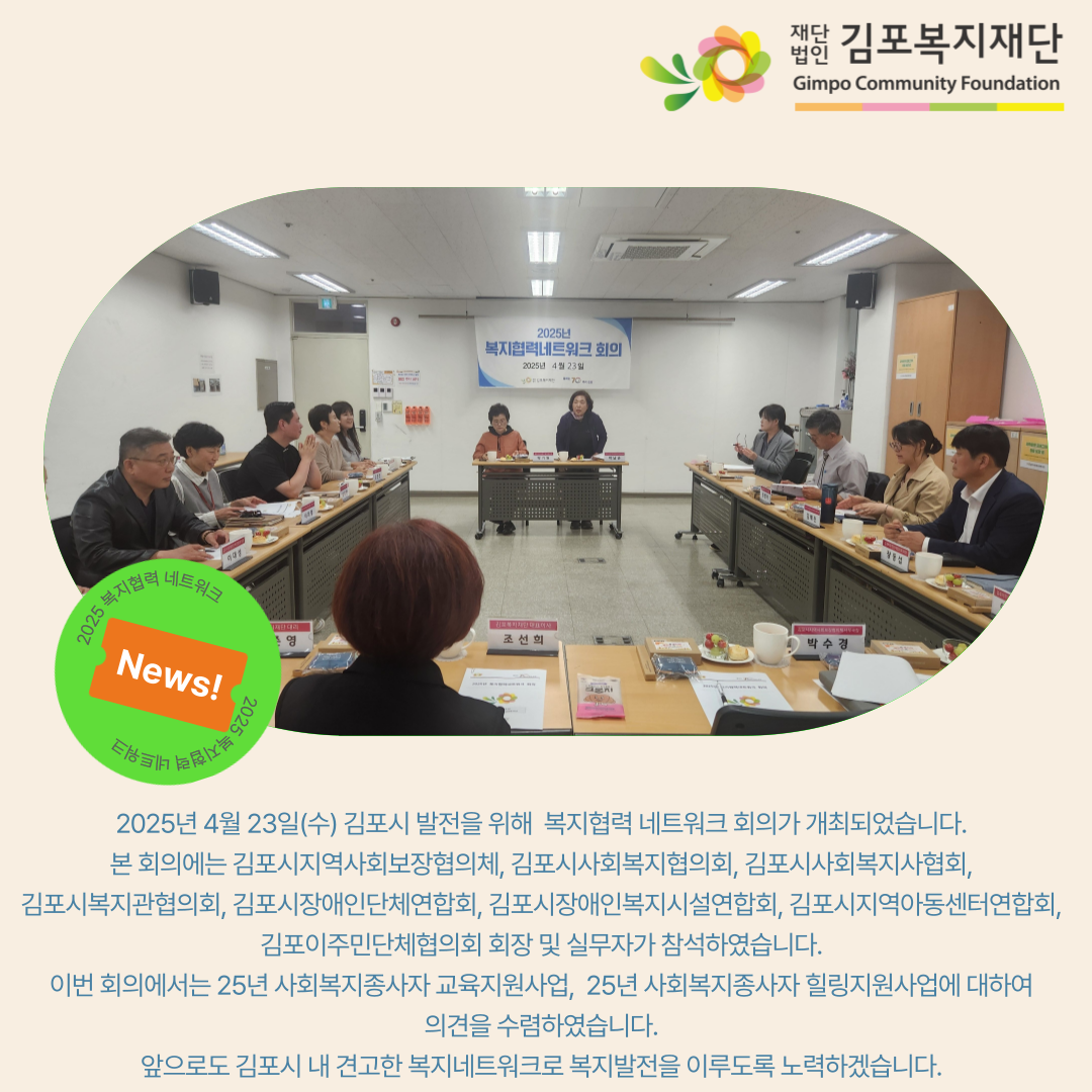 2025년 4월 23일(수) 김포시 발전을 위해 복지협력 네트워크 회의가 개최되었습니다.