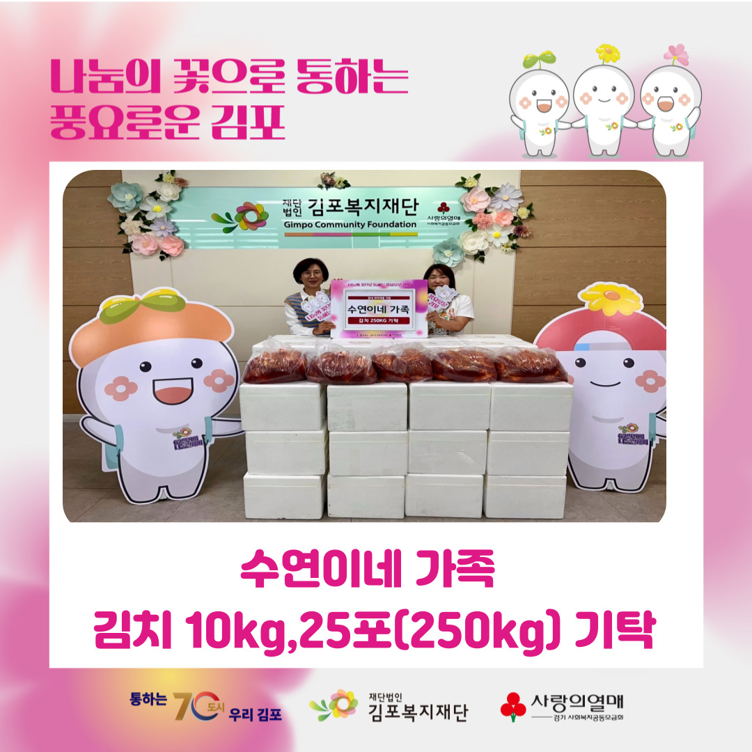 수연이네 가족의 지속적인 나눔은 나눔가족이라는 좋은 본보기가 되어 주고 계십니다! 다시 한 번 진심으로 감사드리며, 김포복지재단도 늘 함께 하겠습니다!