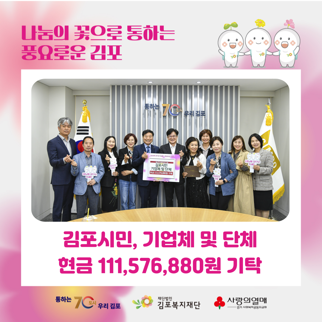 2025년 5월 8일 영남지역의 산불피해에 성금으로 김포시민, 기업체 및 단체가 4월 1일부터 30일까지 모금한 현금 111,576,880원에 대한 기탁식이 진행되었습니다.