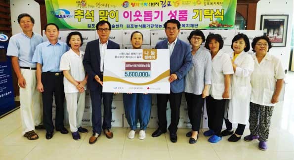 나눔으로 김포시농업기술센터(소장 고근홍)와 함께 500만원 상당의 전통한과 200상자를 김포복지재단에 기탁했다.
