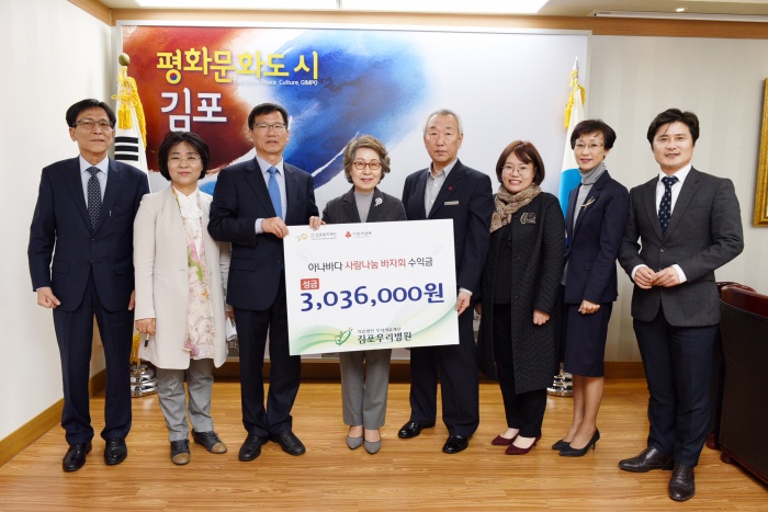 김포복지재단(이사장 조덕연)은 김포우리병원(이사장 고성백)이 지난 24일 병원 1층 로비에서 개최한 ‘아나바다 사랑나눔 바자회’의 수익금 전액을 5일 재단에 기부했다고 밝혔다.